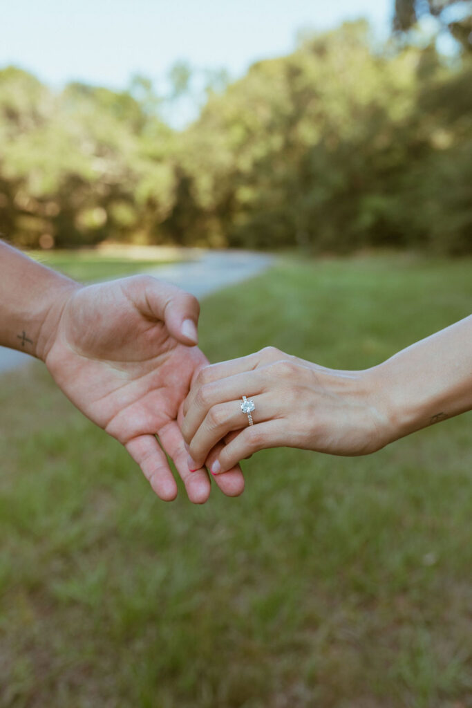 Simple details can bring personality into your photos and make them stand out. This session at Challenger Seven Memorial Park was the perfect example of how a thoughtful prop and a beautiful spring setting can come together to give you the perfect photos to announce your engagement.
